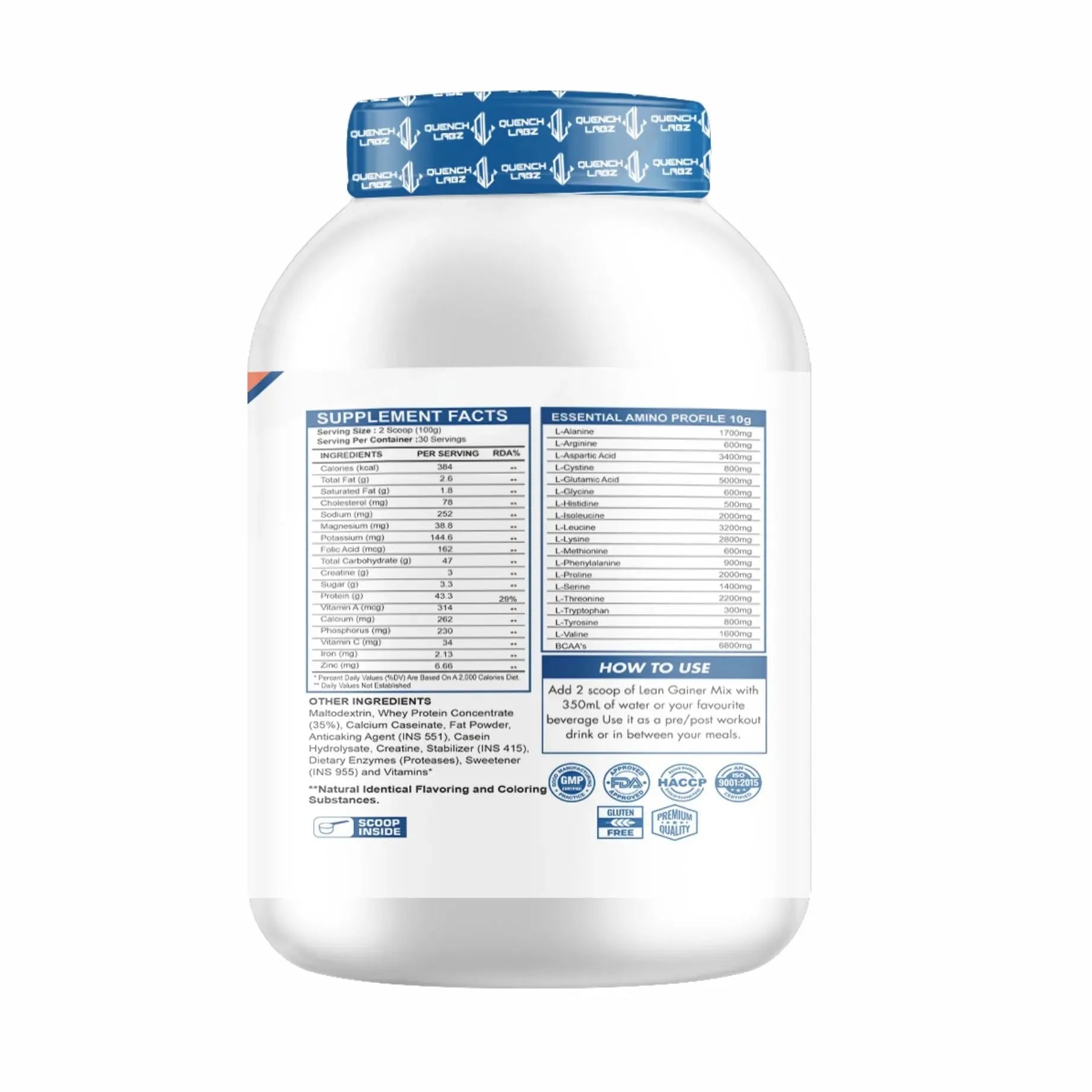لا تكتفِ بمنتج Lean Gainer العادي، بل ارتقِ برحلة لياقتك البدنية مع منتج Quench Labz Lean Gainer اليوم.