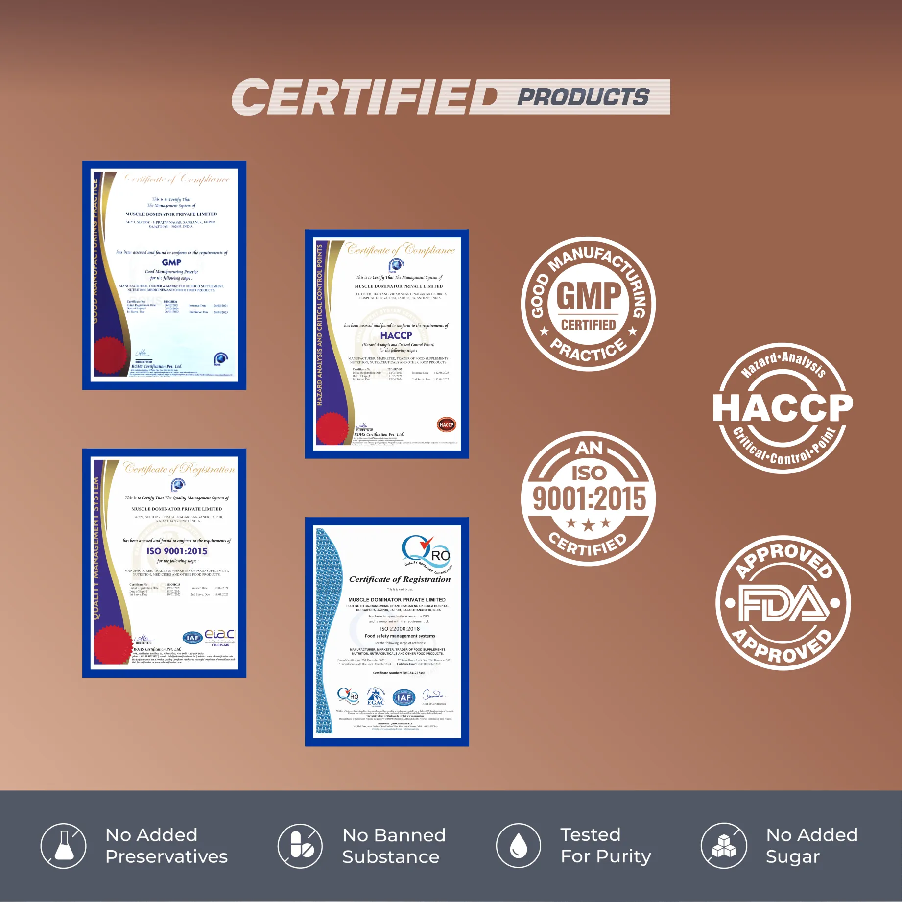 Yes, all Quench Labz supplements are manufactured in FDA-approved and GMP-certified facilities. We follow stringent quality control measures to ensure the highest safety, purity, and efficacy standards.