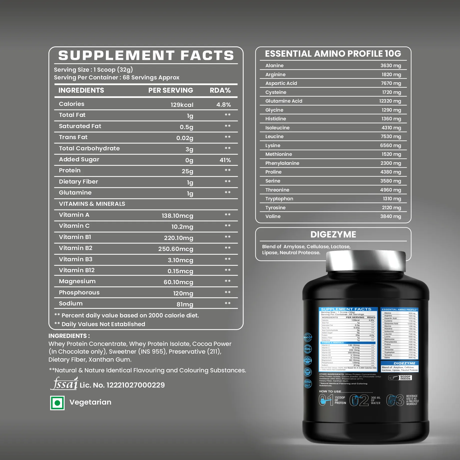 प्रत्येक सर्विंगले २५ ग्राम शक्तिशाली प्रोटिन प्रदान गर्दछ, जुन मांसपेशीको वृद्धिलाई समर्थन गर्न र रिकभरीमा सहयोग गर्नको लागि उत्तम हुन्छ। तर त्यति मात्र होइन। हाम्रो ब्ल्याक सिरिज ह्वी प्रोटिनमा प्रति सर्विंग १ ग्राम ग्लुटामाइन पनि हुन्छ, एक एमिनो एसिड जसले मांसपेशी रिकभरीलाई बढावा दिन्छ र प्रतिरक्षा स्वास्थ्यलाई बढावा दिन्छ।