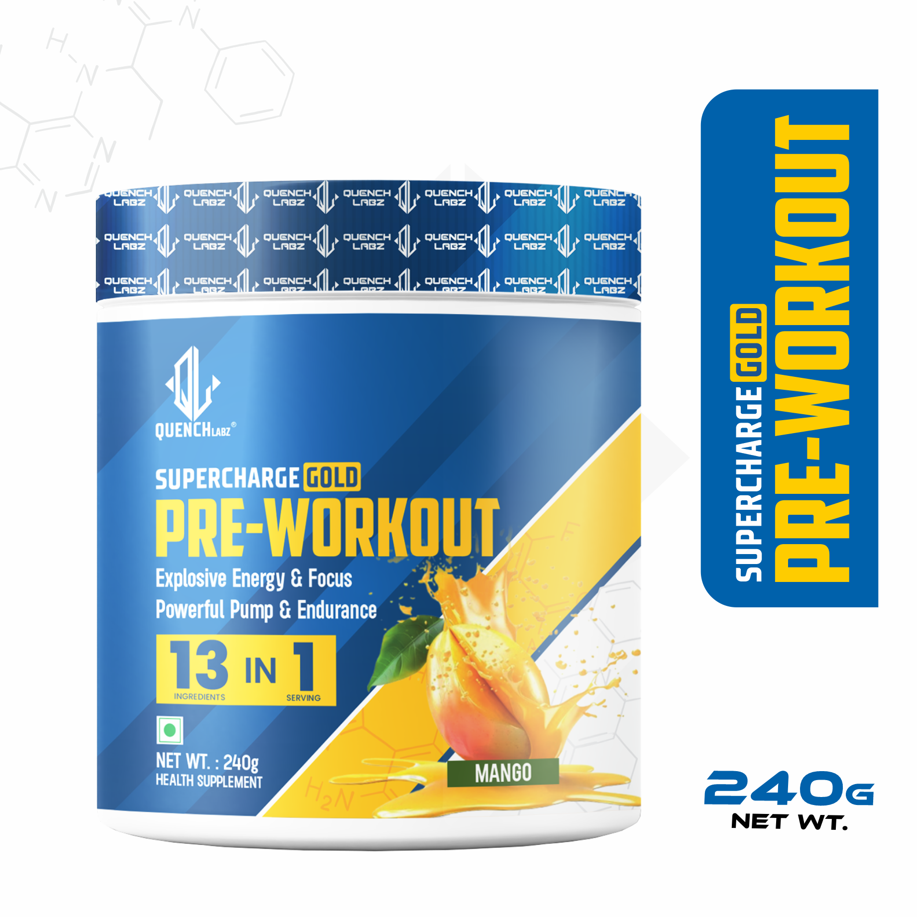 • Supercharge Gold Pre Workout | Energy, Focus, Pump, Strength & Endurance Pre Workout